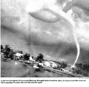 LONG ROPE TORNADO COILS FOR MILES ABOVE A SHORELINE