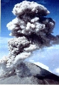 SMOKE STREAMERS ISSUE SIDEWAYS FROM A VOLCANO